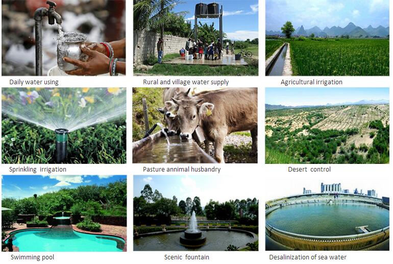 Solar pumping system can be applied in the area with sunshine and areas lack of electricity, such as: