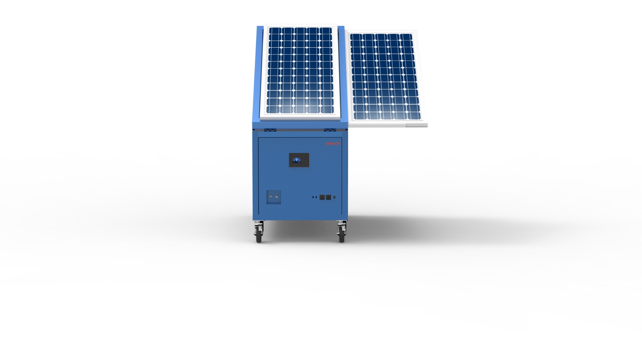 All-In-One system 1KVA suppies reliable and integrative power solution for non-electricity and power shortage areas. Diesel generator, grid power, PV power can be connected into system at the same time. It also has energy storage function. With optimized energy management system, it can manage DG-PV-Grid-Storage system accurately and extend the lifespan of system greatly. It can adapt to any load with MPPT function and pure sine wave output. With USB-5V output interface, it can meet ruquirements of various household portable devices. With integrative design, PV module is foldable and angle is adjustable so that the system can save space and operate easily.